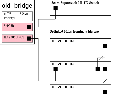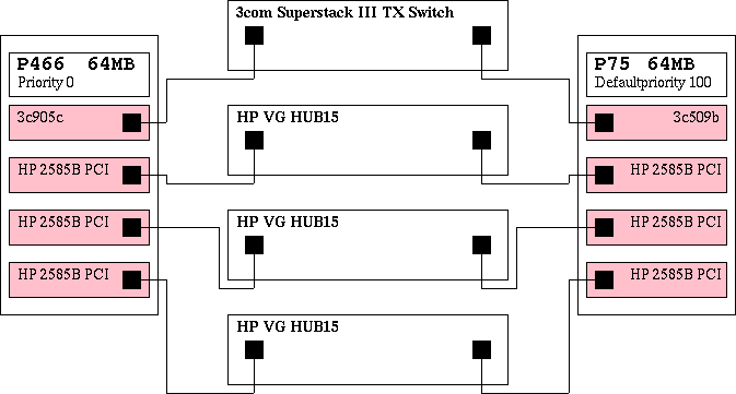 The 3com card is connected to a 3com Superstack Fast Ethernet switch.