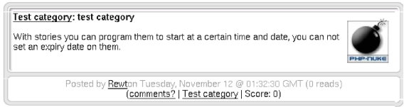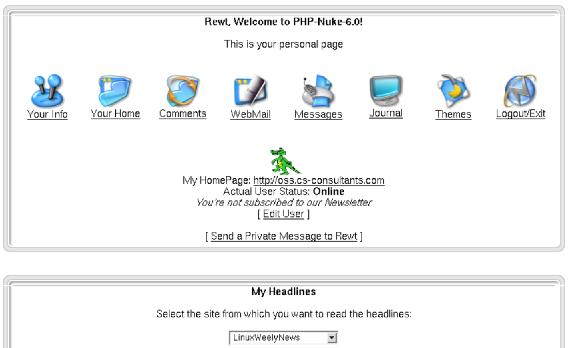 Born as the heart of PHP-Nuke, it was the obligatory Home Page in previous versions. In the last versions it is instead possible to define which modules should appear as the default page.