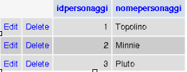 We continue using the example of Topolino from the Section called Creating fully compatible modules: the rules to follow and create a very simple module that displays a GIF of Topolino with a list of 3 predefined names that are editable by the users. This is a nonsense module but it's simple enough to be understood by everybody. The DB we will use is MySQL, but the example, by changing some detail, works with all DB's. First of all let's see the skeleton of every module that we will construct: