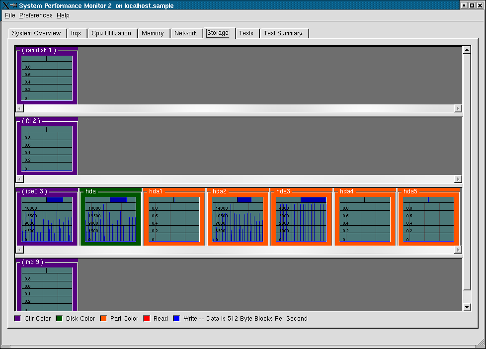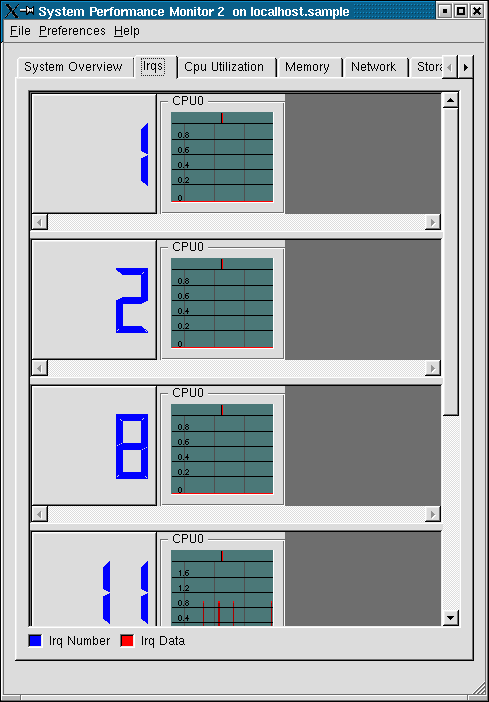 When you click the IRQs tab, a histogram opens for each IRQ line that